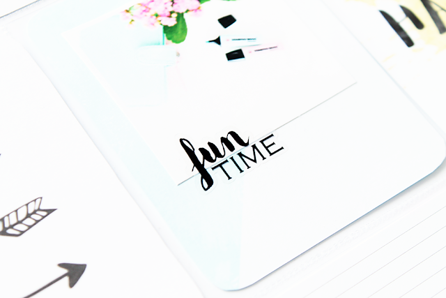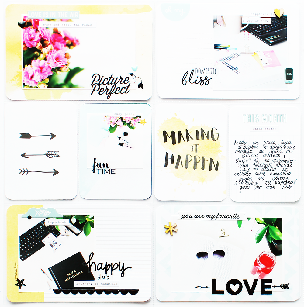 Na tej stronie wykorzystałam bardzo dużą ilość transparentnych naklejek w kolorze czarnym, np. MAMBI albo Simple Stories z kolekcji "Beautiful", które rewelacyjnie kontrastują z jasnymi kartami.